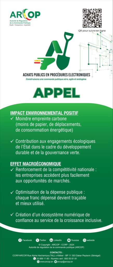 La commande publique fait sa mue. Sous la conduite de l’actuel Directeur général de l’Autorité de régulation de la commande publique (ARCOP), Dr Moustapha DJITTE, le Sénégal entend tourner la page des appels d’offres physiques coûteux, archaïques et peu transparents. Cette nouvelle ère s’ouvre dès demain (mardi 14 octobre 2025) avec le lancement officiel de la plateforme numérique dénommée Achats publics en procédures électroniques (APPEL).
