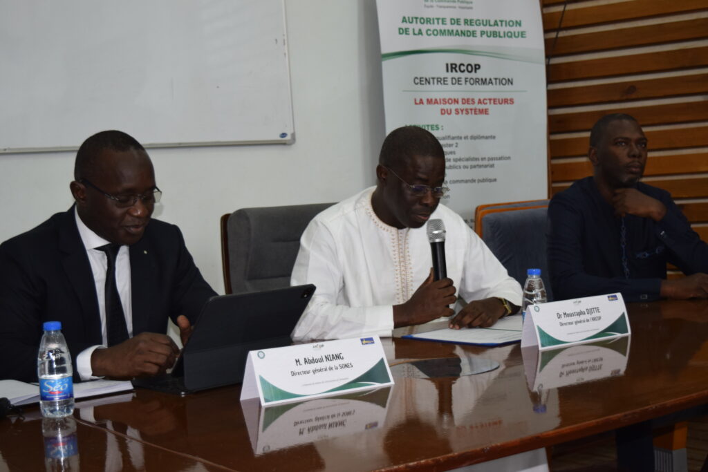 La salle de conférence de l’Institut de Régulation de la Commande Publique (IRCOP) vibrait, ce jeudi 30 octobre 2025, au rythme d’un moment fort de la vie institutionnelle. La cérémonie de remise des attestations aux participants des sessions de formation organisées au profit de la SONES et de l’AGEROUTE a été conjointement présidée par le Directeur général de l’ARCOP, Dr Moustapha DJITTÉ, le Directeur général de la SONES, M. Abdoul NIANG, et le Secrétaire général de l’AGEROUTE, M. Bocar Malick MBOW.
