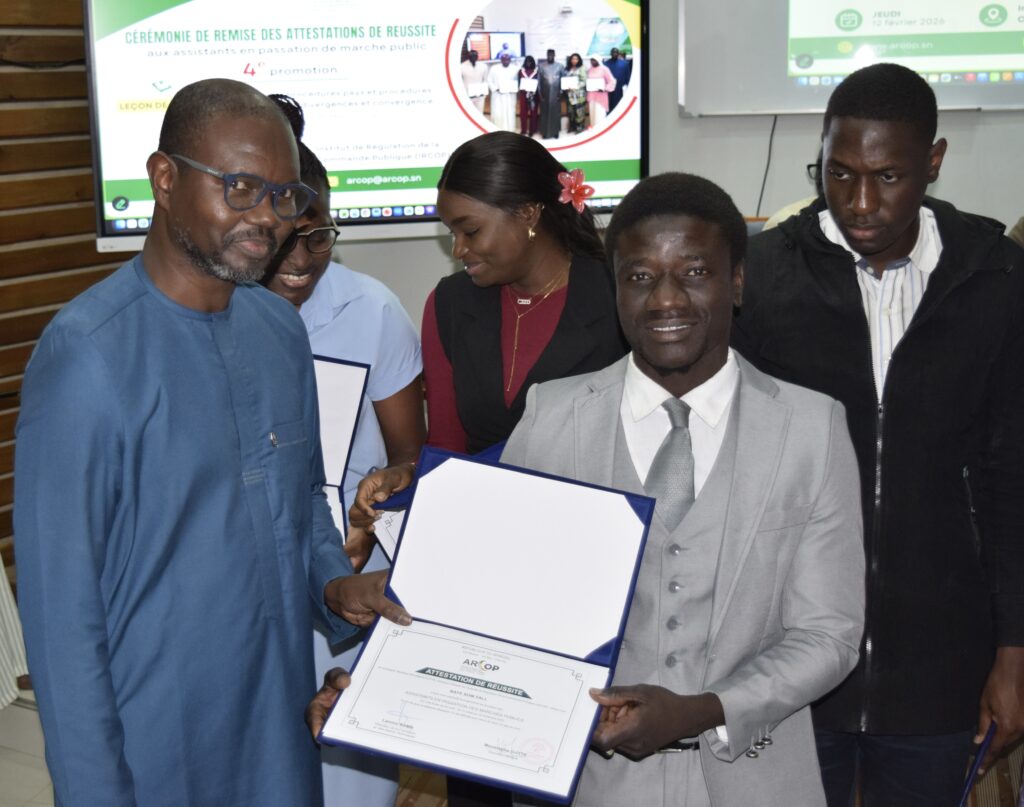 La 4e promotion du programme des jeunes assistants en passation de marchés publics a été officiellement consacrée ce jeudi 12 février 2026 à l’IRCOP, centre de formation de l’ARCOP. Avec 246 récipiendaires, cette cohorte enregistre un taux record et porte à 661 le nombre total d’assistants formés depuis le lancement du programme.
